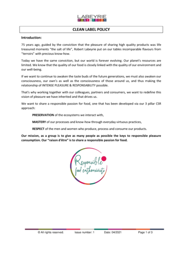 Our clean label policy