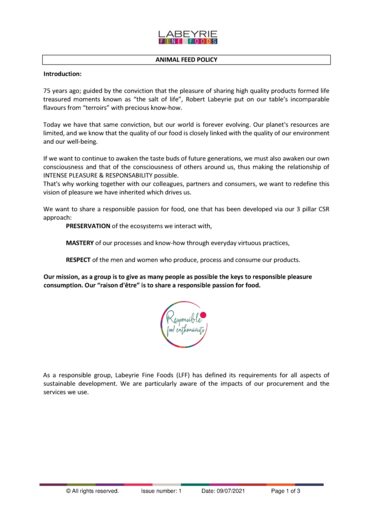 Our animal feed policy