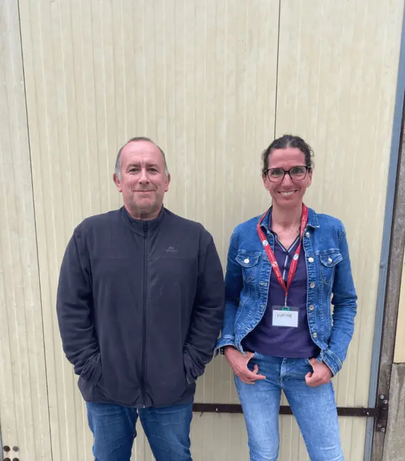 Séverine, ingénieur filière canard et Thierry, éleveur de canards.