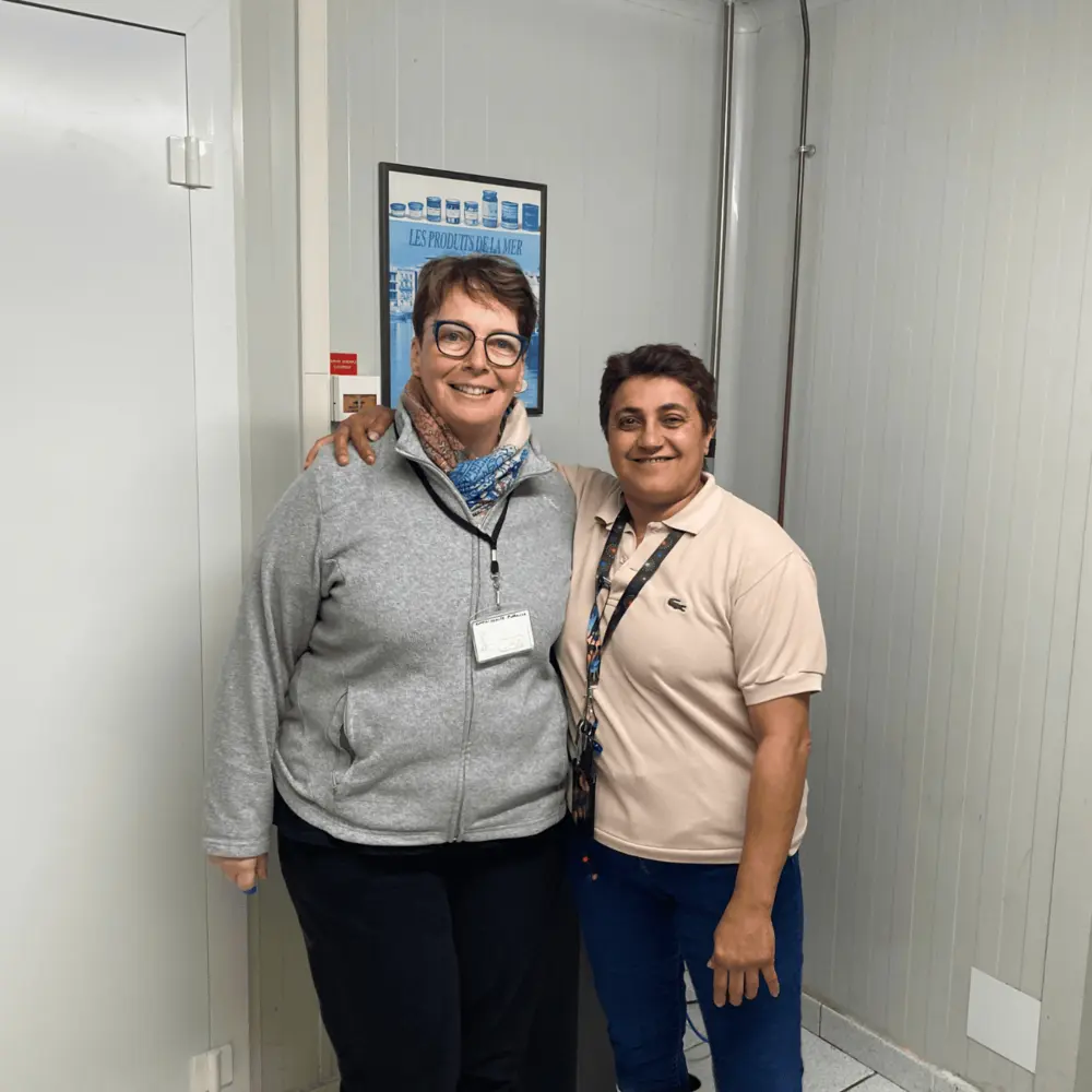 Nos deux guides du jour travaillent en tout début de chaîne de production, notamment pour l'un des produits stars de Labeyrie Fine Foods : le foie gras. Stéphanie est en extraction de foie depuis 6 ans côté abattoir et Cathy, 25 ans d'ancienneté, fait principalement du déveinage.